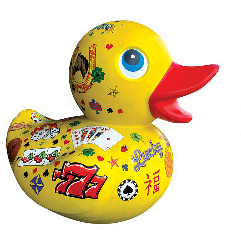 Lucky Duck, 2021, Flashe paint, fiberglass, 3 x 4 x 3 ft.